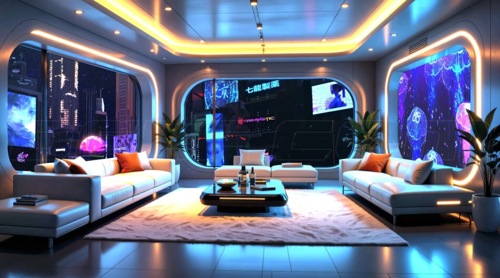 【動く背景イラスト】フューチャリスティック・マイ・リビングルームのループ映像素材を追加しました。