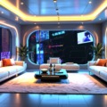 【動く背景イラスト】フューチャリスティック・マイ・リビングルーム(ループ映像MP4・4ファイル)|近未来アニメ風イラスト素材