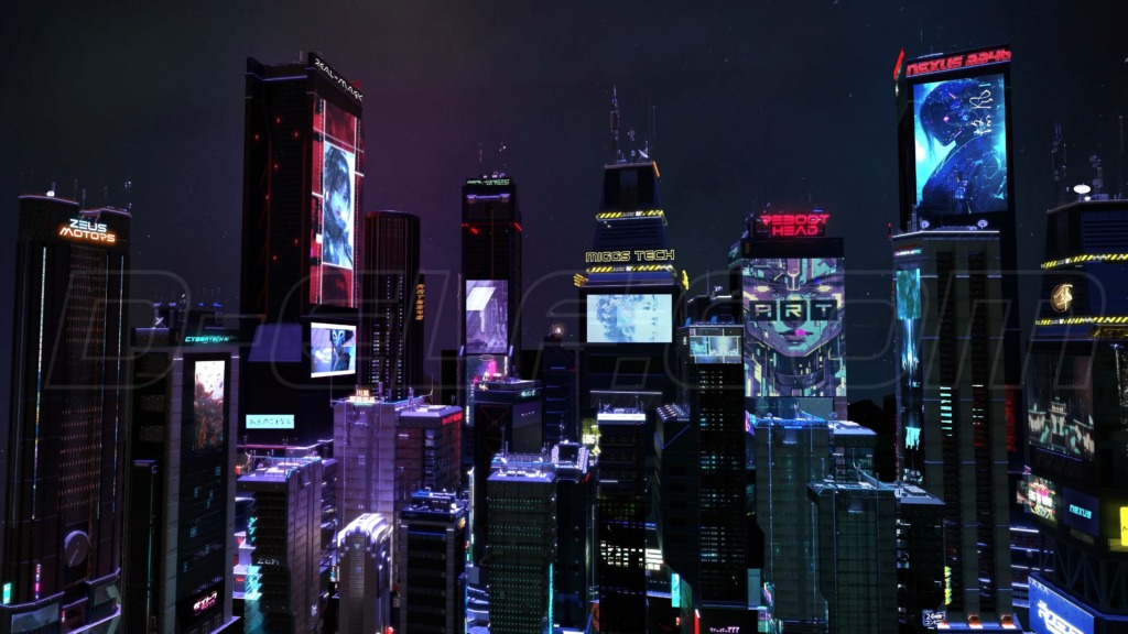 【動く背景イラスト】フューチャリスティック・ナイト・シティー | Futuristic night city Sample